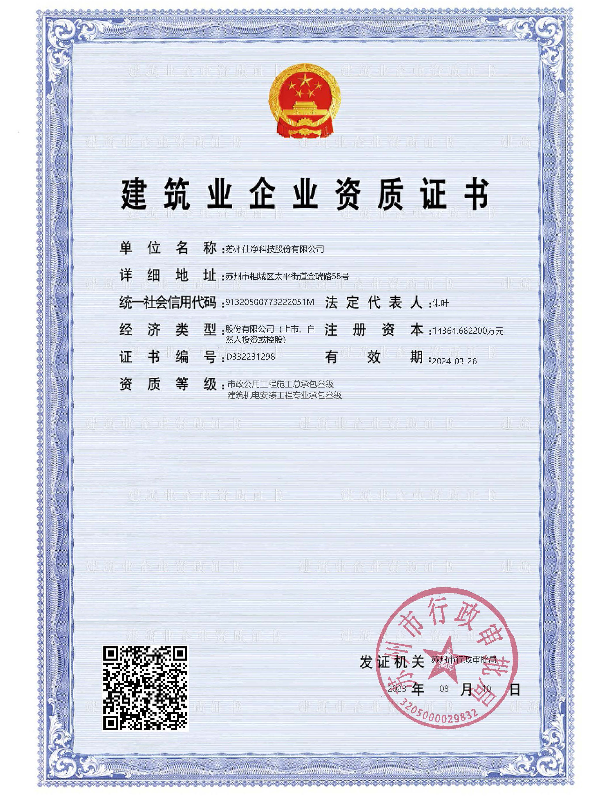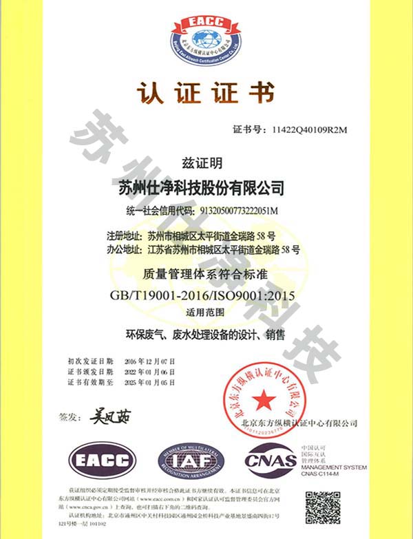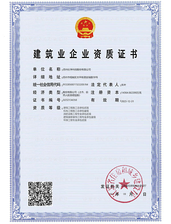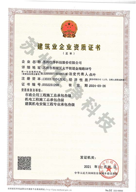 首頁»了解仕凈»資質證書
